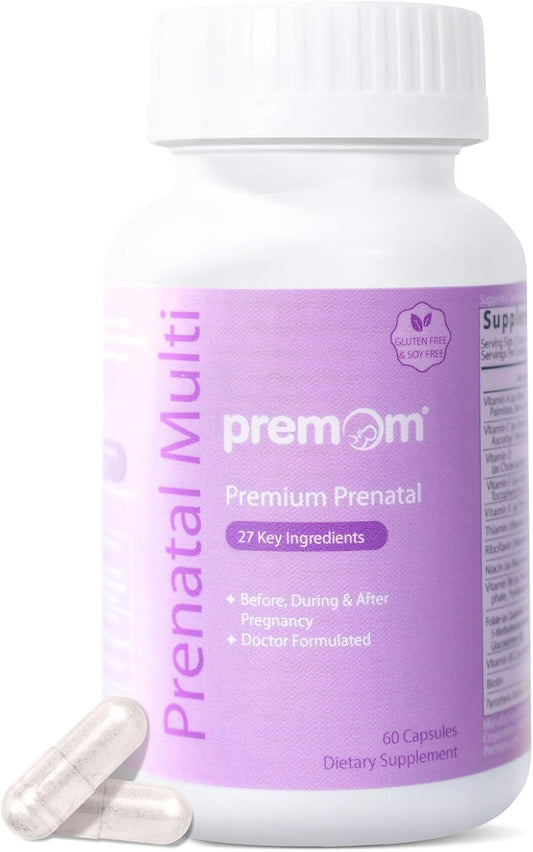 Vegetarian Prenatal & Postnatal Multivitamin with Folate, Choline, B12, D3 - Non-GMO & Gluten-Free - 60 Tablets