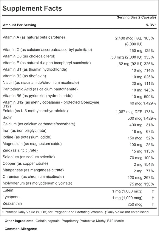 Prenatal Essentials 60 Capsules - Complete Women's Prenatal Vitamins with Iron and Methylfolate