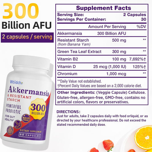 300 Billion AFU Akkermansia Muciniphila Probiotic Supplement for Men & Women - Supports Gut, Digestive, and Immune Health - 240 Capsules