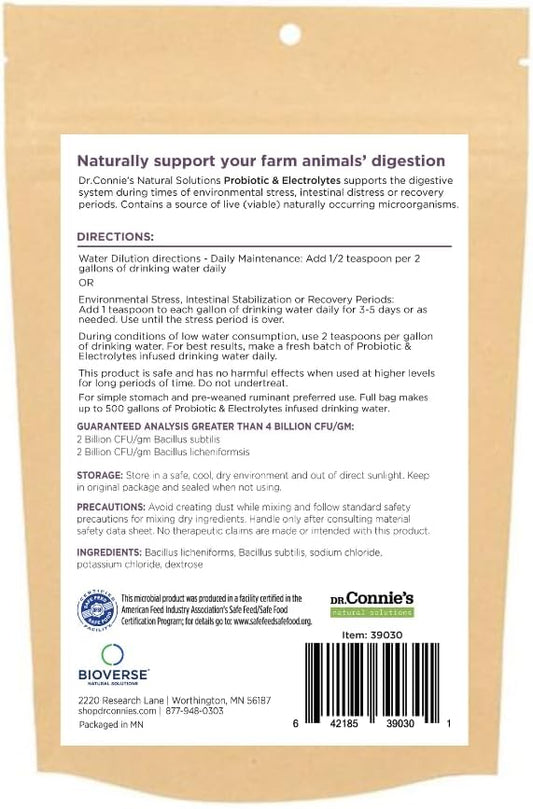 Veterinarian Formulated Probiotic + Electrolyte Supplement for Farm Animals by Bioverse Dr. Connie - Promotes Healthy Gut Function