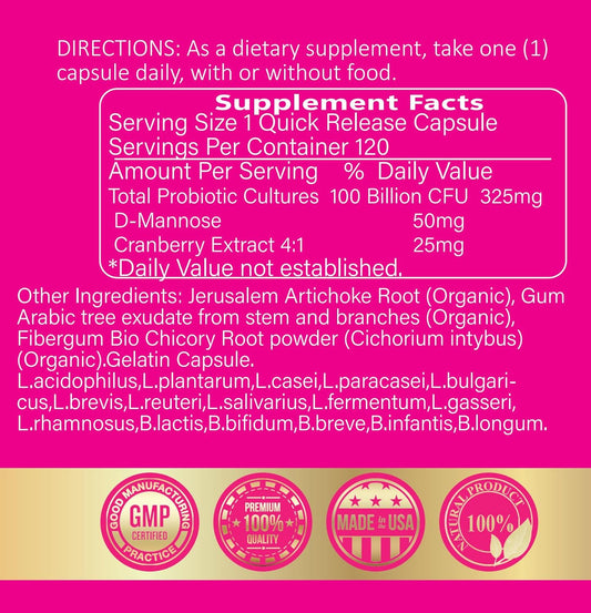 Women's PH Balance & Digestive Health Probiotic - 100 Billion CFU - 6 Unique Strains - 120CT