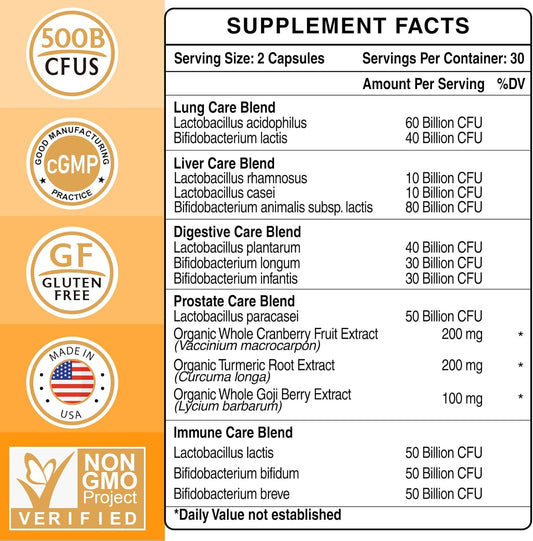 Men's Probiotic Supplement with 500 Billion CFUs & 12 Strains, Turmeric, Cranberry, Goji - Digestive, Immune, Urinary Tract Health - 60-Day SupplyVendor:OcshesallyRegular price $168.64 AUDRegular priceUnit price / per-