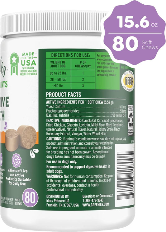 Chicken Flavor Greenies Digestive Health Probiotics Soft Chews for Dogs - 80 ct. Tub, 15.6 oz.