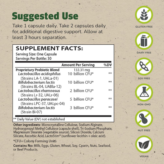 Master Supplements Theralac - 30 Capsules - Multi-Strain Probiotic for Gut Health, Gas & Bloating Relief - Gluten Free - 30 Servings