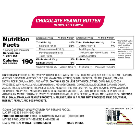 Fit Crunch Snack Size Protein Bars - 6-Layer Baked Bar with Soft Cake Core, 3g Sugar (18 Bars, Peanut Butter)