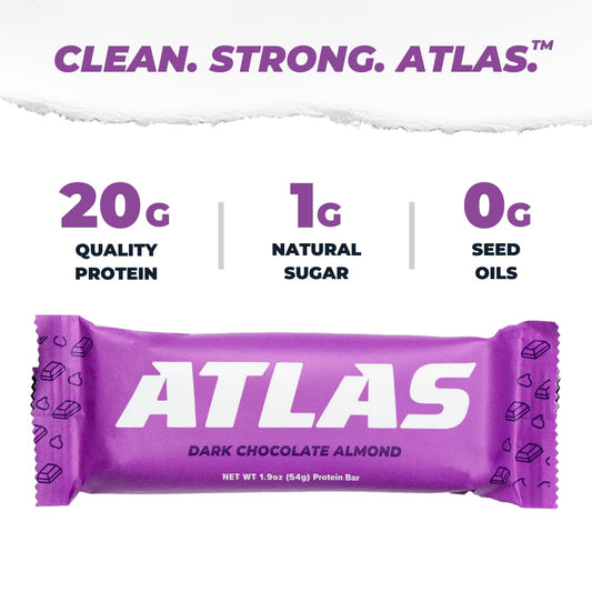 Atlas Protein Bar Dark Chocolate Almond - 20g Protein, 1g Sugar, Gluten Free - 24 Bars
