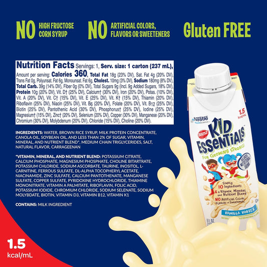 24 Count Vanilla Vortex Boost Kid Essentials 1.5 Balanced Nutritional Drink for Children