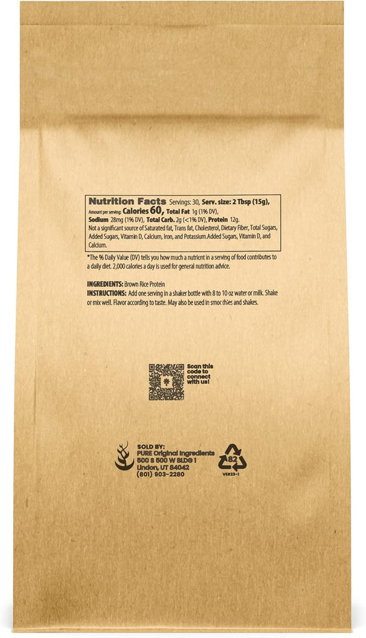1 lb Organic Brown Rice Vegan Protein Powder - Pure Ingredients, Sprouted, Gluten Free for Shakes & Smoothies
