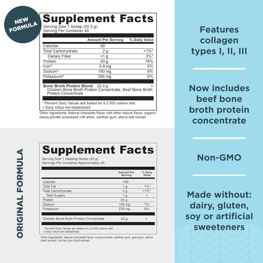 40 Servings of Ancient Nutrition Bone Broth Protein Powder in Chocolate and Vanilla Flavors