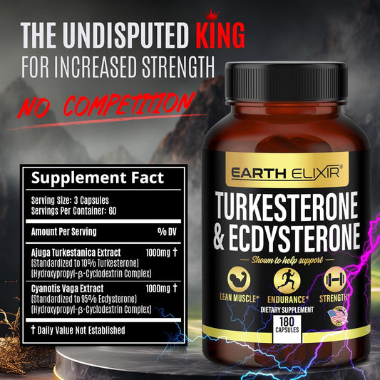 1000mg Earth Elixir Turkesterone and Ecdysterone Capsules (180 Count) - 2 Month Supply - 95% Beta Ecdysterone - Third-Party Tested for Men