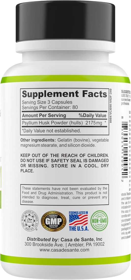 Non-GMO Low FODMAP Fiber Supplement Capsules by Casa de Sante