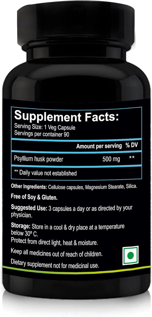 Nutriosys Isabgol Psyllium Husk 500mg Supplement - 90 Veg Capsules, High-Quality Soluble Fiber Source
