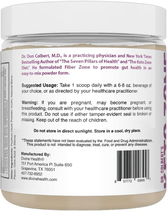 Dr Colbert MD Berry Fiber Zone Powder - Prebiotics, Soluble & Insoluble Fiber - Psyllium Husk & Inulin - 6g Fiber - 9.52 oz - Healthy Gut Zone Book Recommended