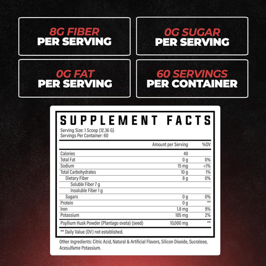 Premium Psyllium Husk Powder Fiber Supplement, 10g for Digestive Health, Natural Prebiotic with Delicious Strawberry Flavor - 60 Servings
