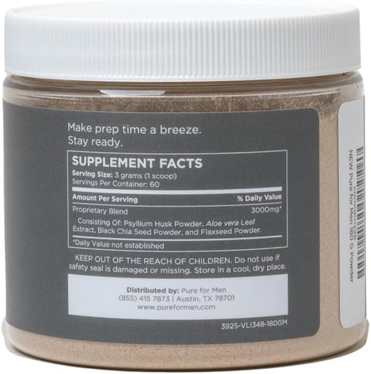 Pure for Men Original Fiber Supplement Powder | Promotes Digestive Regularity | Psyllium Husk, Aloe Vera, Chia Seeds, Flaxseeds | Vegan Blend | 180 gm