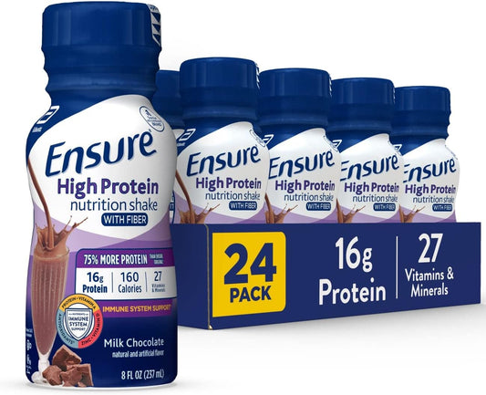 Ensure Plus Nutrition Shake with Fiber, 16g Protein, Milk Chocolate, Meal Replacement Liquid, Gluten-Free - 8 Fl Oz (Pack of 24)