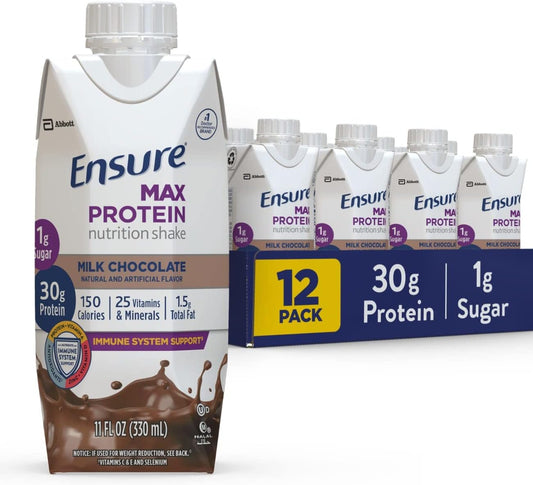 Bundle of 12 Ensure Max Protein Milk Chocolate & French Vanilla Nutrition Shakes - 30g Protein, 150 Calories