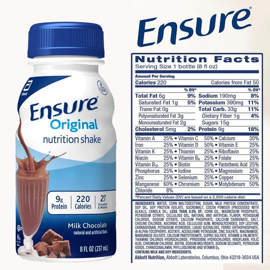 JÁCLER Ensure Original Nutrition Shakes Variety Pack - Milk Chocolate, Vanilla, Strawberry - 8 Fl Oz (24 Pack)