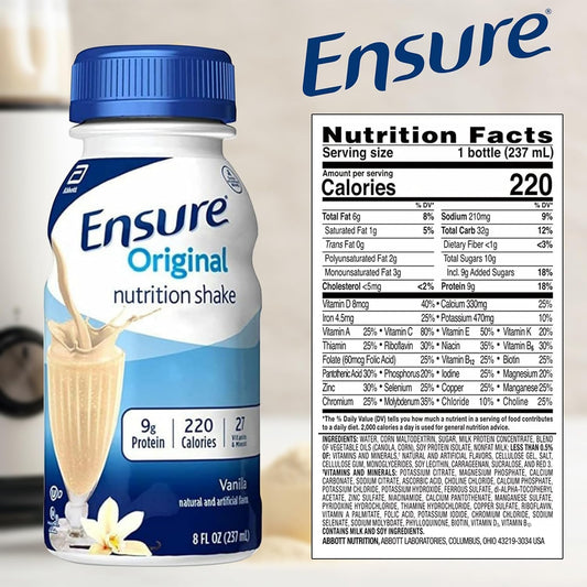 Vanilla Meal Replacement Shakes, 24 Pack of Ensure Original Nutrition Shake with 9g Protein, 8 fl oz