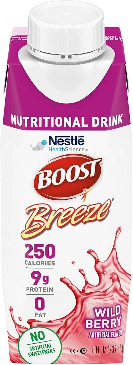 Nutrient-Rich Protein Drinks Bundle: BOOST Breeze Wild Berry & Ensure Clear Mixed Fruit, 9g Protein, 250 Calories, 0g Fat, 8 fl oz & 10 fl oz (Pack of 12)