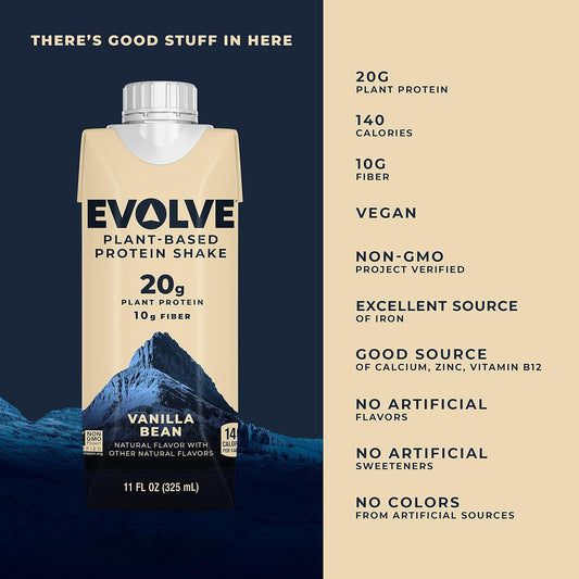 Plant-Based Protein Shake, Vanilla Bean Flavor, 20g Vegan Protein, Dairy-Free, No Artificial Sweeteners, Non-GMO, 10g Fiber, 11 Fl Oz, Pack of 12