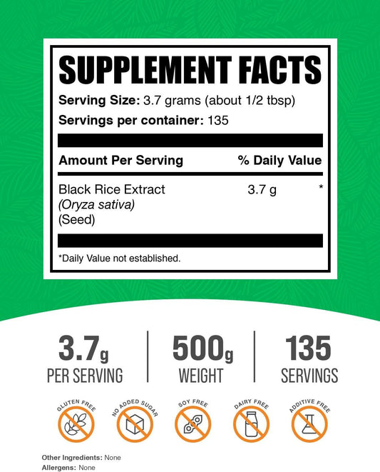 Black Rice Extract Powder - Gluten-Free Supplement, 3700mg per Serving, 500g - Bulk Black Rice Powder