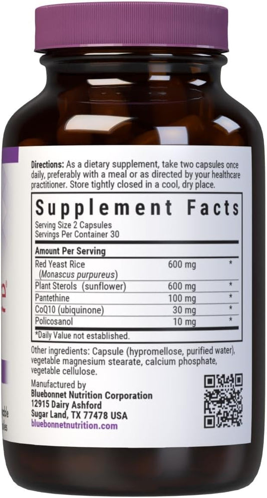 Bluebonnet Nutrition CholesteRice Vegetable Capsules - Red Yeast Rice Blend with Plant Sterols, Pantethine, CoQ10, Policosanol - Vegan, Vegetarian, Non GMO, Gluten Free, Soy-Free - 60 Capsules