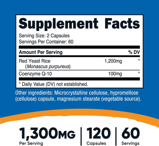 Nutricost Red Yeast Rice with CoQ10 1300mg - 120 Capsules, 60 Servings - Non-GMO, Gluten Free Formula