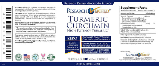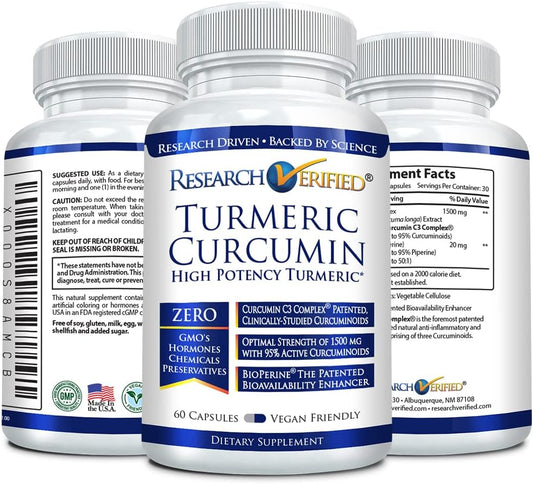 360 Capsules Research Verified Turmeric Curcumin with BioPerine & Curcumin C3 Complex - Vegan - Made in USA