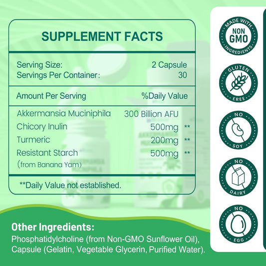 30 Day Supply of inGreens Akkermansia Muciniphila Probiotic with Chicory Inulin, Turmeric, Resistant Starch - Vegan & Gluten Free Gut Management Supplement