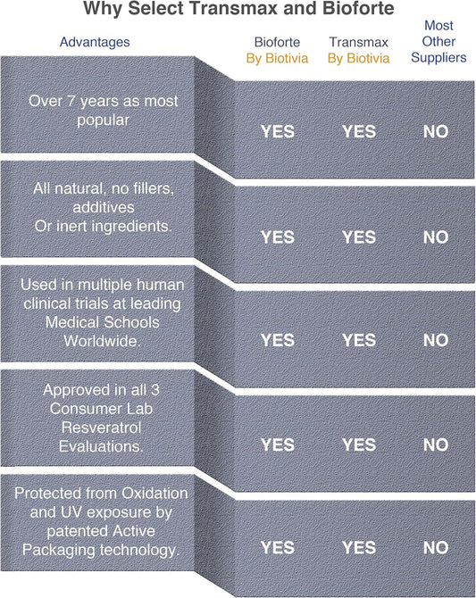 High-Potency Transmax 1000mg Resveratrol Supplement with Polydatin & Piperine for Optimal Absorption. Vegan Capsules, No Fillers.Vendor:BiotiviaRegular price $222.54 AUDRegular priceUnit price / per-
