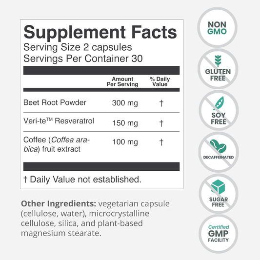 SuperBeets Memory & Focus Brain Supplement Capsules - Enhanced Mental Alertness with Clinically Studied Nootropics and Beet Root Powder - 60 CapsulesVendor:humanNRegular price $156.59 AUDRegular priceUnit price / per-