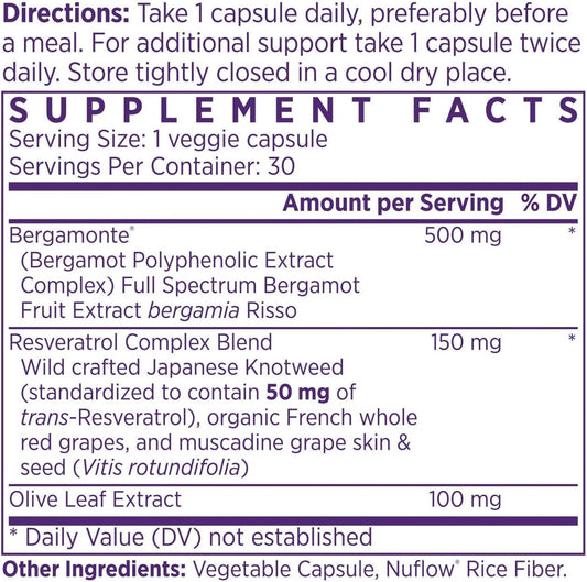 Italian Citrus Bergamot & Resveratrol Supplement for Healthy Cholesterol & Cellular Function, Developed by Cardiologist, 30-Day Supply