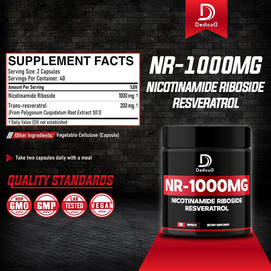 Premium NAD Supplement with Nicotinamide Riboside and Trans Resveratrol - 1000mg NR for Men & Women - 80 Capsules
