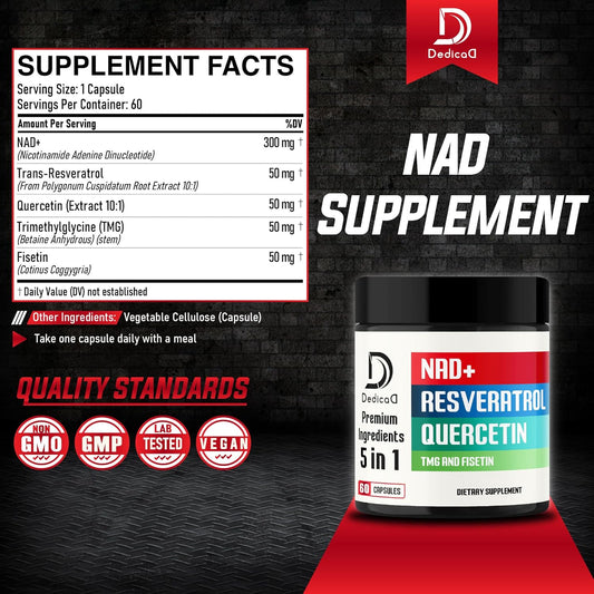 Pure NAD+ Supplement 500mg with Fisetin, TMG, Resveratrol, and Quercetin - Energy, DNA Repair, Aging Defense - 60 Capsules