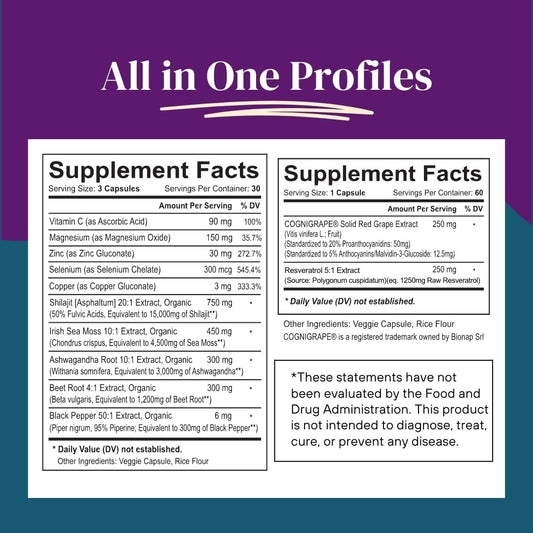 Cognigrape Red Grape Extract with Resveratrol & Shilajit Minerals - Cognitive Wellness Bundle with Sea Moss & Ashwagandha - Non-GMO, Vegan, Gluten-Free