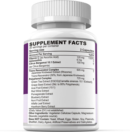 High Purity Trans Resveratrol 600mg Capsules - 90 Vegan Antioxidant Supplement - Non-GMO, Gluten-Free