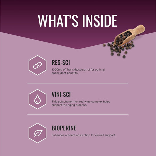 600mg Biogenique Resveratrol Capsules: Potent Antioxidants & Trans-Resveratrol, Anti-Aging & Cardiovascular Support - 60 Count - USA Made Vegan Supplement