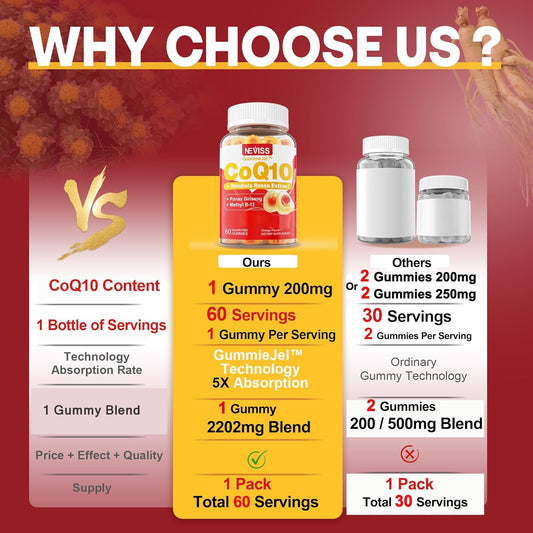 400mg Sugar-Free CoQ10 Gummies with Rhodiola, Ginseng, B12, B6 - Heart Health, Antioxidant, Energy - 4 Months Supply