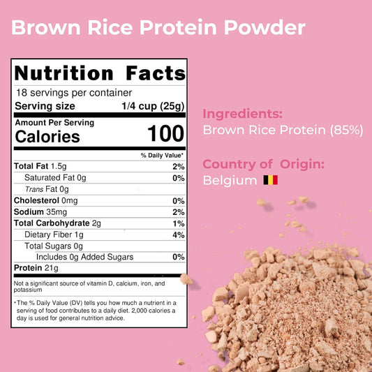 1 lb Organic Brown Rice Vegan Protein Powder - Pure Ingredients, Sprouted, Gluten Free for Shakes & Smoothies