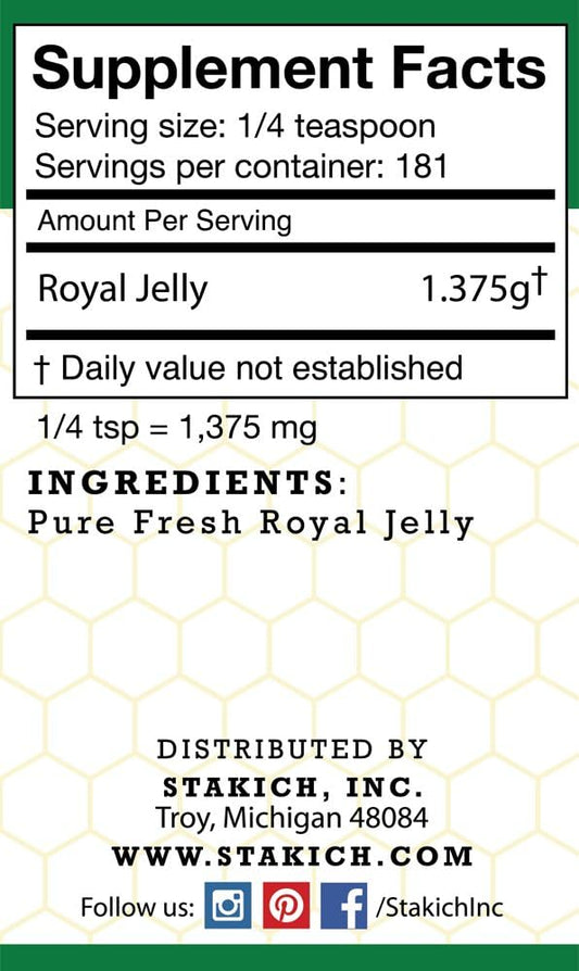 Stakich Fresh Royal Jelly - 100% Pure and Natural - No Additives - 8 oz (227g)