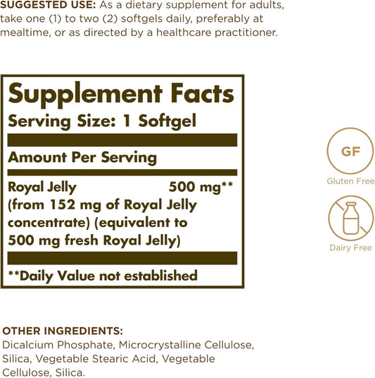 Solgar Royal Jelly "500" Softgels - 60 Count, Gluten-Free, Dairy-Free - 60 Servings