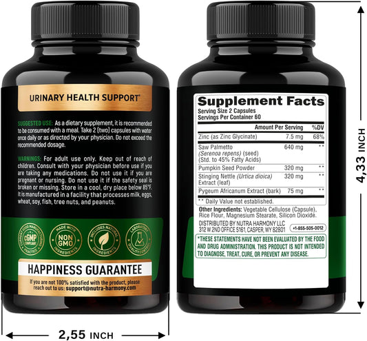 Empower Health Labs Prostate Health Support Supplement with Saw Palmetto, Zinc, Red Raspberry, and Nettle - 60 Capsules for Urinary and Prostate Wellness