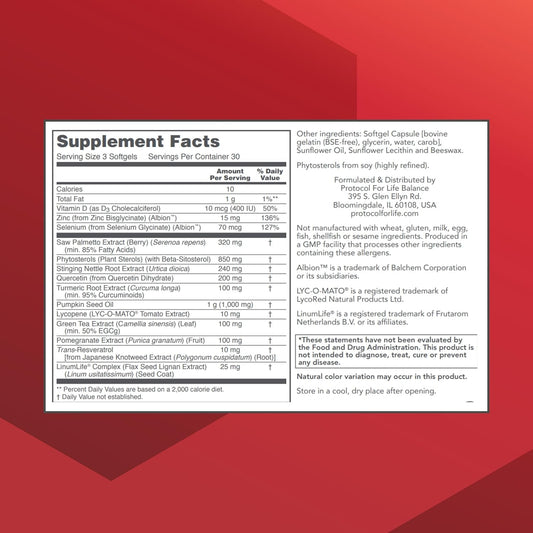 Protocol Prostate-B Clinical Strength Supplement with Beta Sitosterol, Lycopene, Saw Palmetto - 90 Softgels for Men's Prostate Health - Halal & Dairy Free