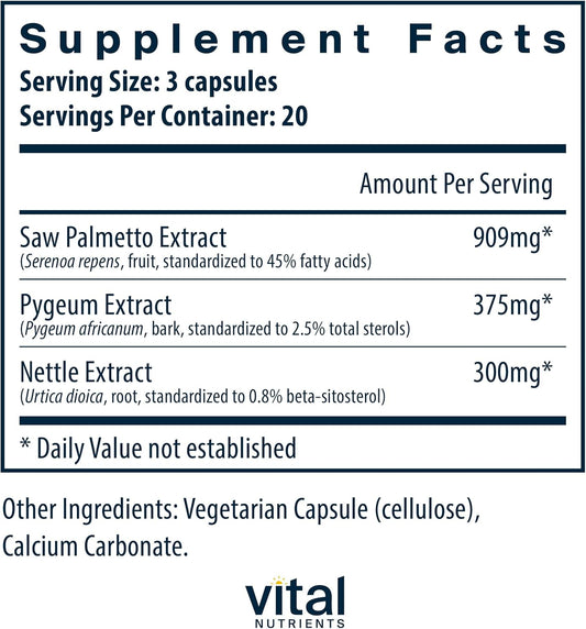 Vegan Saw Palmetto with Pygeum & Nettle Root for Men's Prostate Health - Gluten, Dairy, Soy Free - 60 Capsules