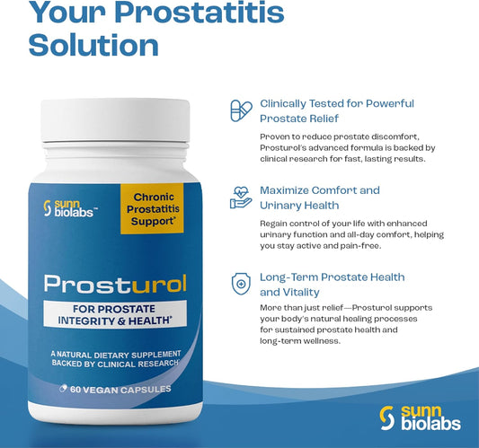 Prosturol Extra Strength Prostate Supplement for Men - Prostatitis & CPPS Treatment with Quercetin, Saw Palmetto, Enzymes - 60 Capsules for Pelvic Health
