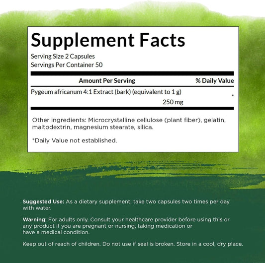 Pygeum Herbal Supplement for Men's Prostate, Bladder, and Urinary Tract Health - 100 Capsules, 125mg