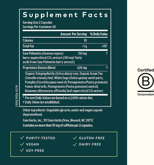 Gaia Herbs Prostate Health Supplement - Saw Palmetto, Green Tea, Nettle Root, White Sage - 120 Vegan Capsules