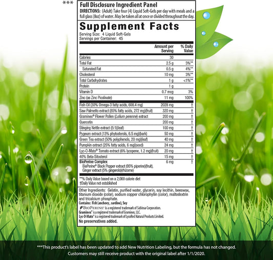 Prosta-Strong Prostate Health Support Supplement with Saw Palmetto, Lycopene, Pumpkin Seed - 180 Liquid Softgels