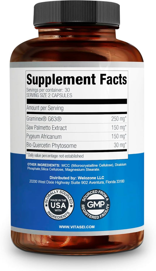 VITASEI Prostabionic Prostate Dietary Supplements for Men with Saw Palmetto, Bio-quercetin & Pygeum Africanum - 60 Capsules, Reduce Bathroom Trips